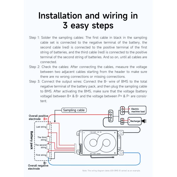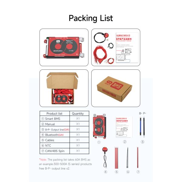 (The BMS and parallel BMS modules must be used together and can't be mixed using. Wiring should be done according to the purchased parallel BMS module corresponding to the current.)
