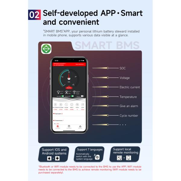 | Battery Protective function | Overcharge, over-discharge, over-current, short circuit, temperature control, pre-charge, disconnection, wrong connection, built-in parallel connection, buzzer (optional), heating (optional) |